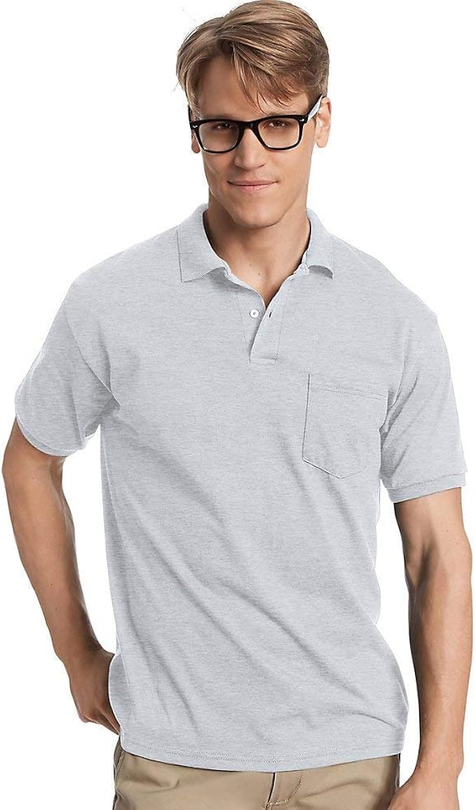 Hanes Men S Cotton Blend Ecosmart Jersey Polo With Pocket At